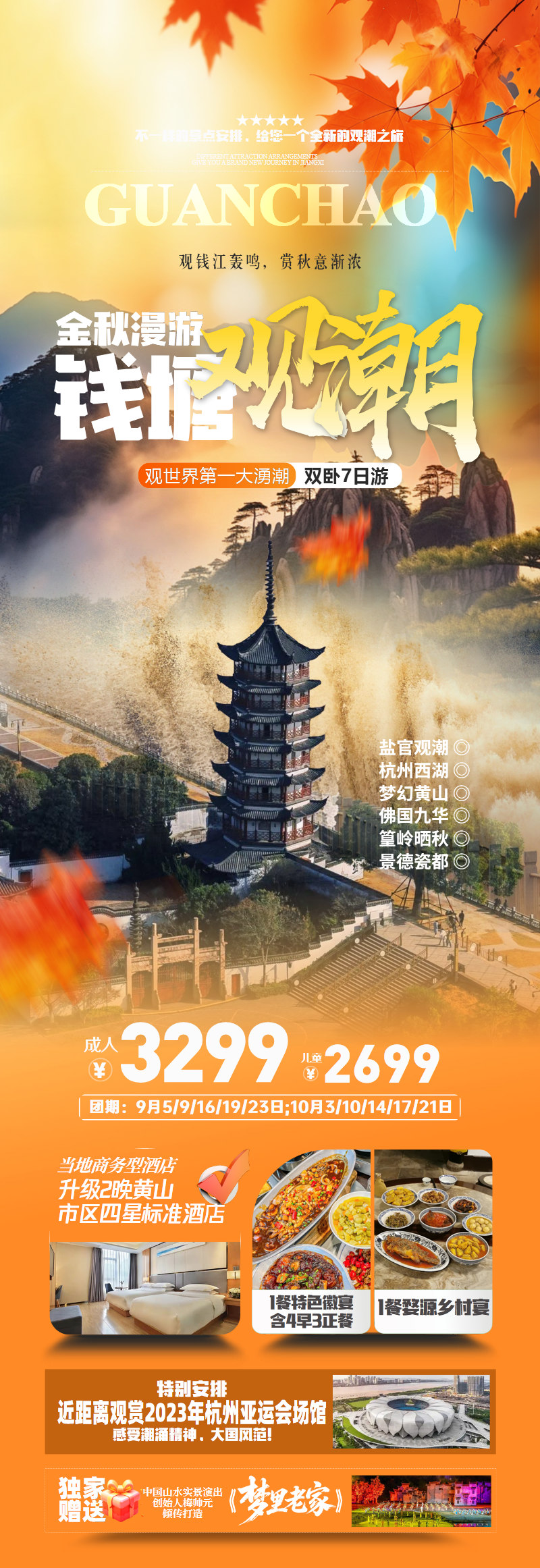 秋季钱塘江观潮旅游长图海报