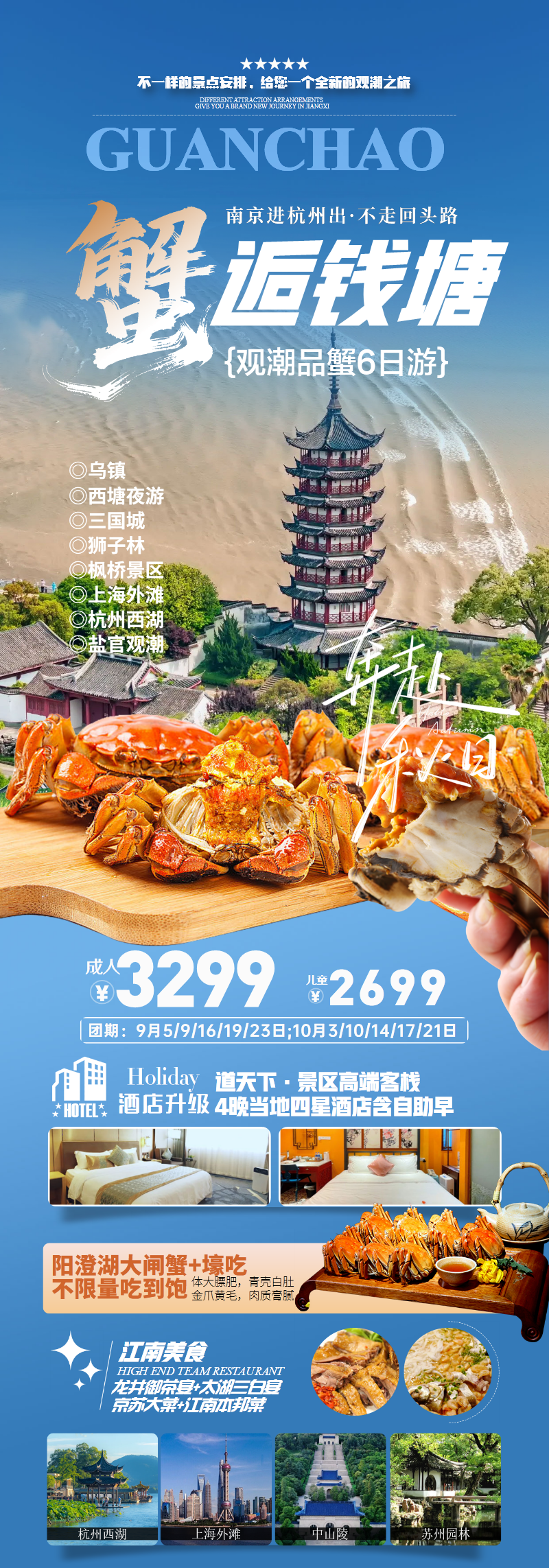 钱塘江观潮品蟹旅游长图海报