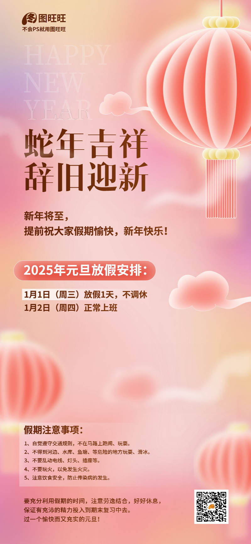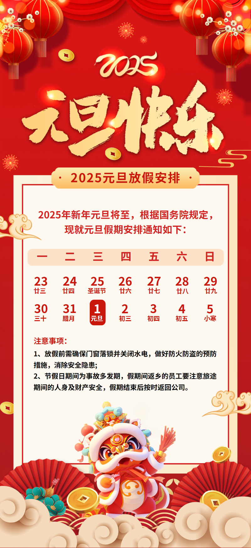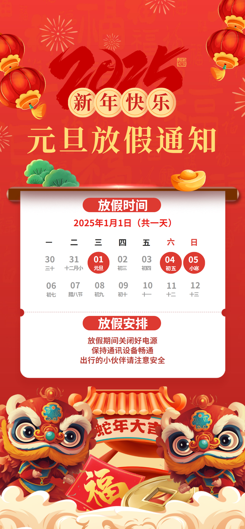 2025年蛇年元旦放假通知海报