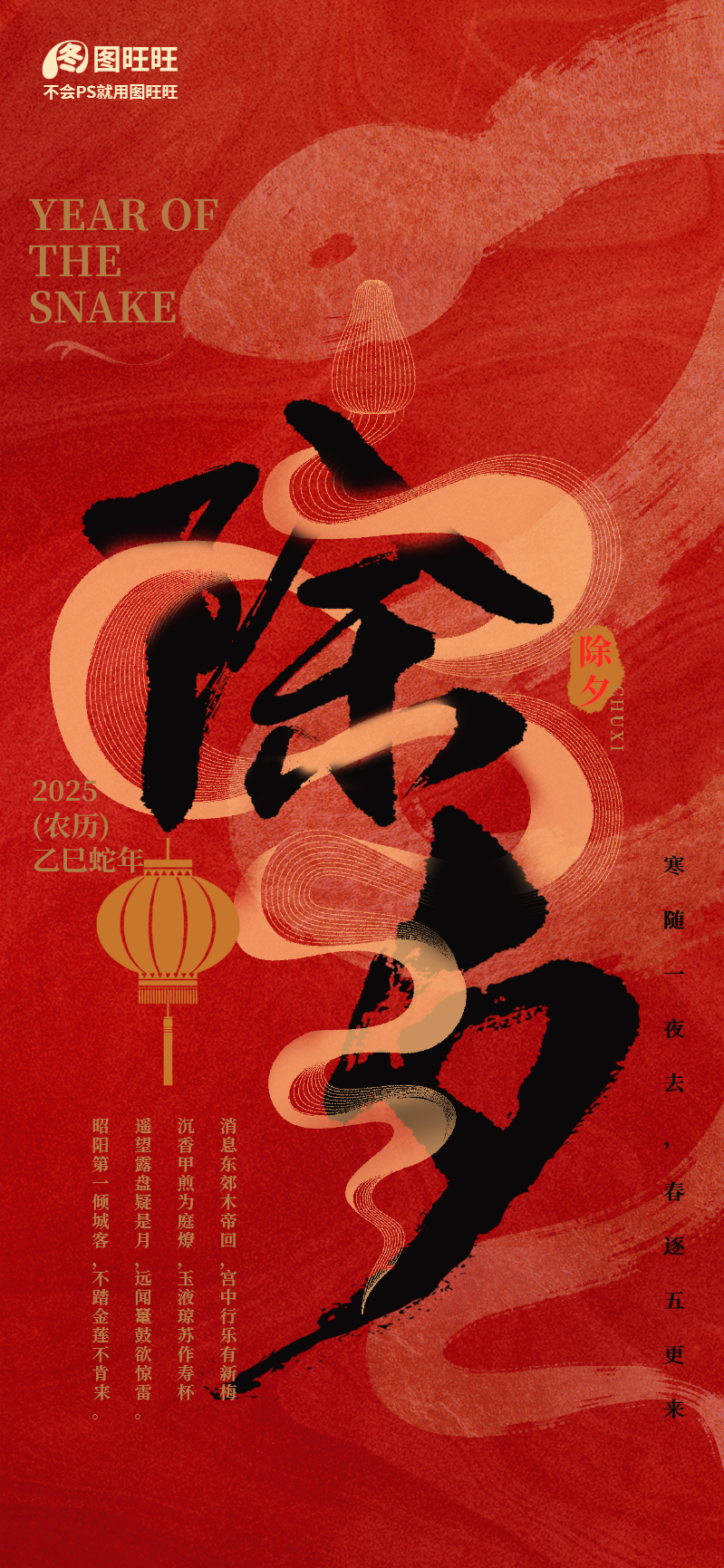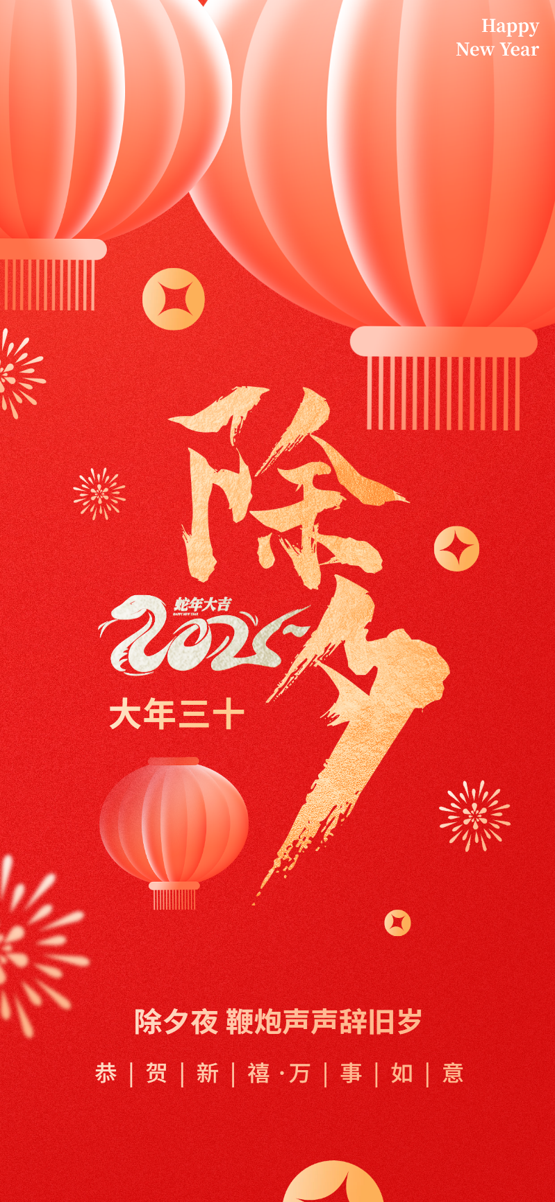 创意蛇年新年除夕海报节日祝福借势营销