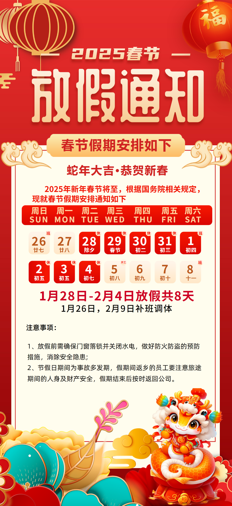 2025年蛇年新年春节放假通知海报