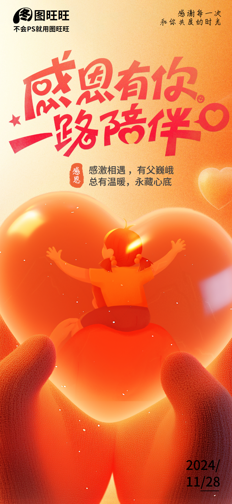 感恩心底的温暖插画海报