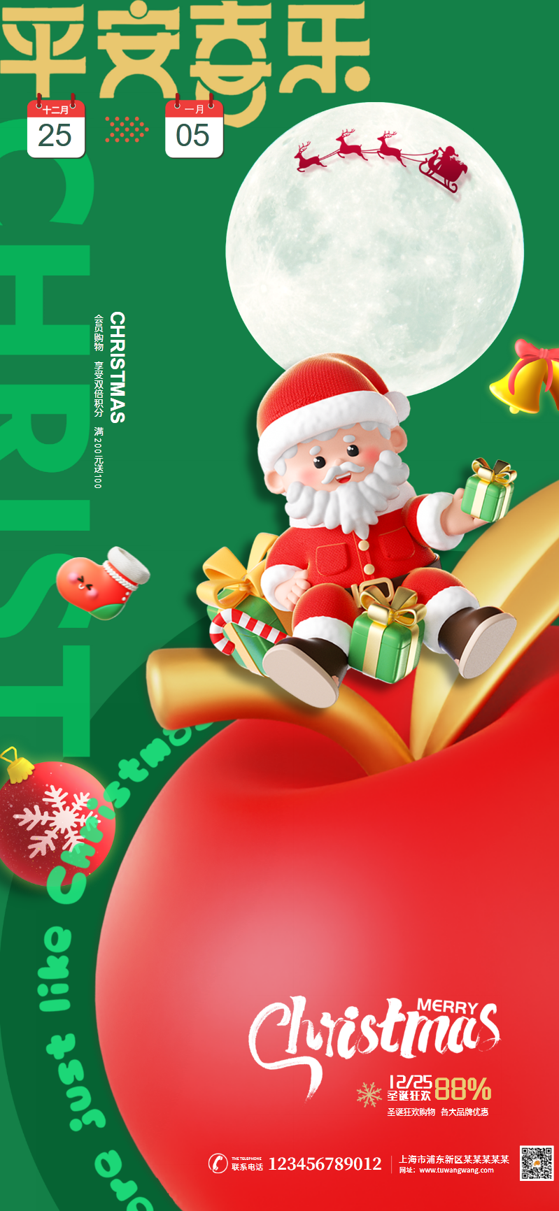 圣诞节餐饮外卖生鲜APP平台开屏海报