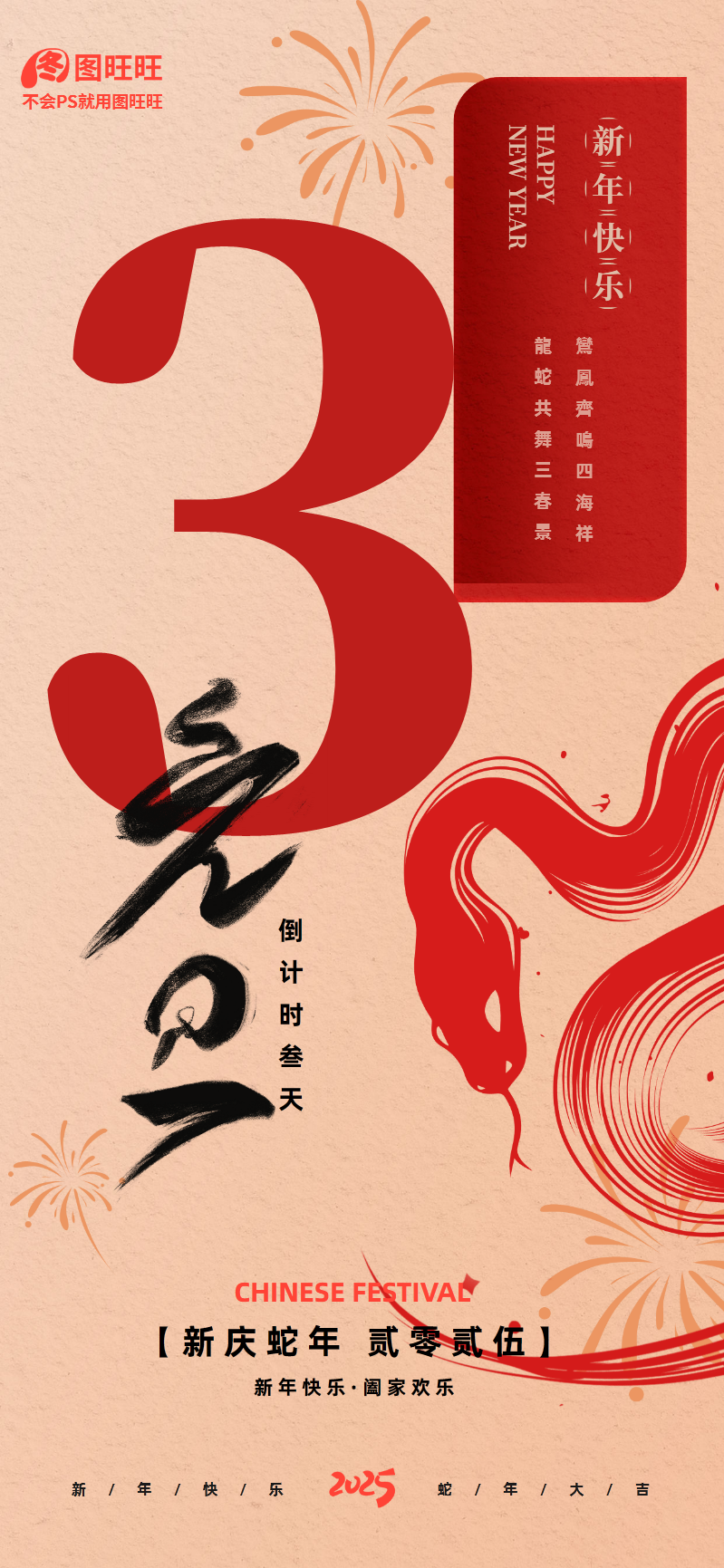 创意质感2025蛇年跨年倒计时3天海报